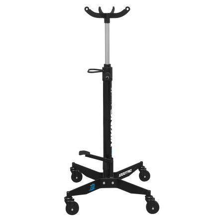 This transmission jack features Quick Lift to reduce the time and effort needed to get saddle to gearbox. Single foot pedal operation keeps hands-free during lifting process. Spring loaded dead man's safety release control reduces the risk of inadvertent lowering. 2-Way hydraulic unit ensures that the saddle lowers at a controlled speed at all times, even without load. Saddle is reversible allowing a jack pad to be fitted to support items other than transmissions. Castors and side handle make the unit easily manoeuvrable. Hydraulic unit larger than the economy models for improved performance and durability. Can be fitted with optional Adjustable Gearbox Support - Model No. ADT3.