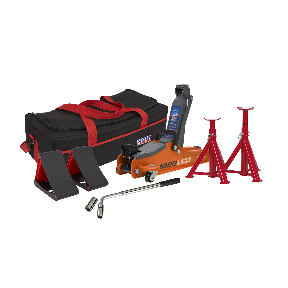 1020LEOBAGCOMBO Low Entry Short Chassis Trolley Jack & Accessories Bag Combo 2 Tonne - Orange