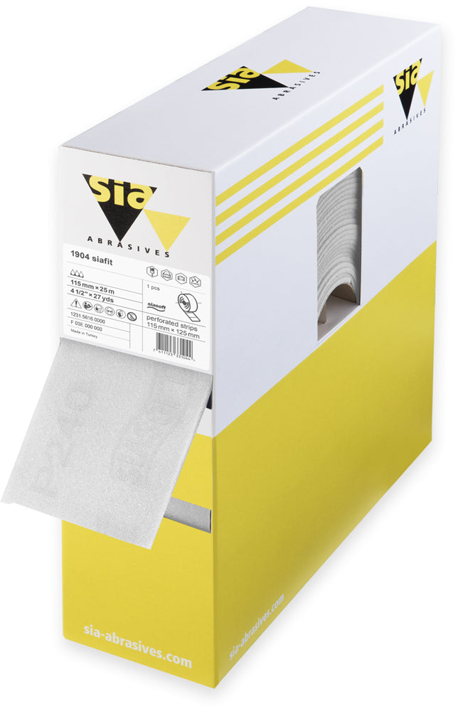 The flexible 1904 siafit abrasive for manual sanding with pressure-equalising foam for round areas, shapes and difficult to access areas. Versatile perforated roll in siasoft quality with a main focus on the automotive industry as well as interior work and furniture production.