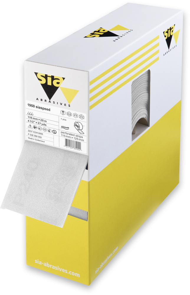The versatile all-round product 1950 siaspeed is specially designed for high stock removal rates, perfect surface quality and long life in applications such as the surface treatment of body filler, primer filler, lacquers and paints.