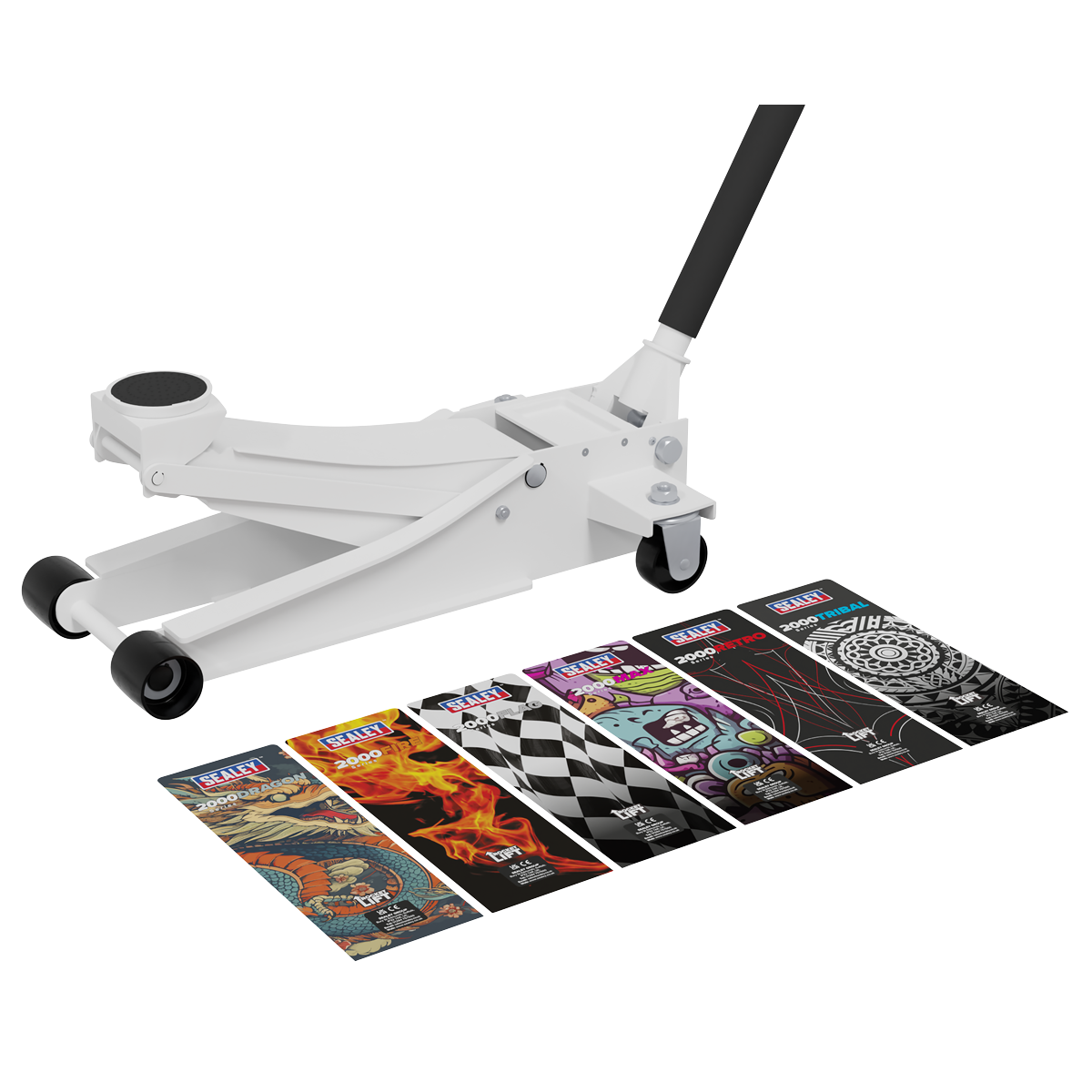 2000CW Low Entry Custom Design Trolley Jack with Rocket Lift 2 Tonne - White