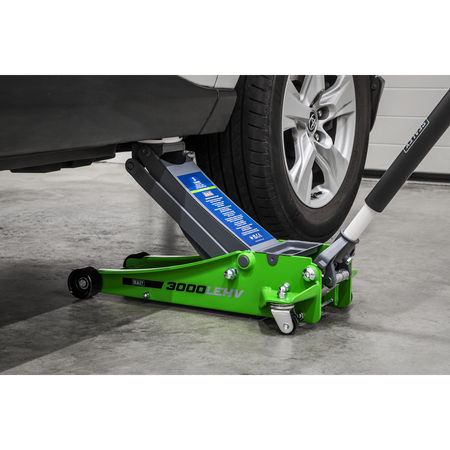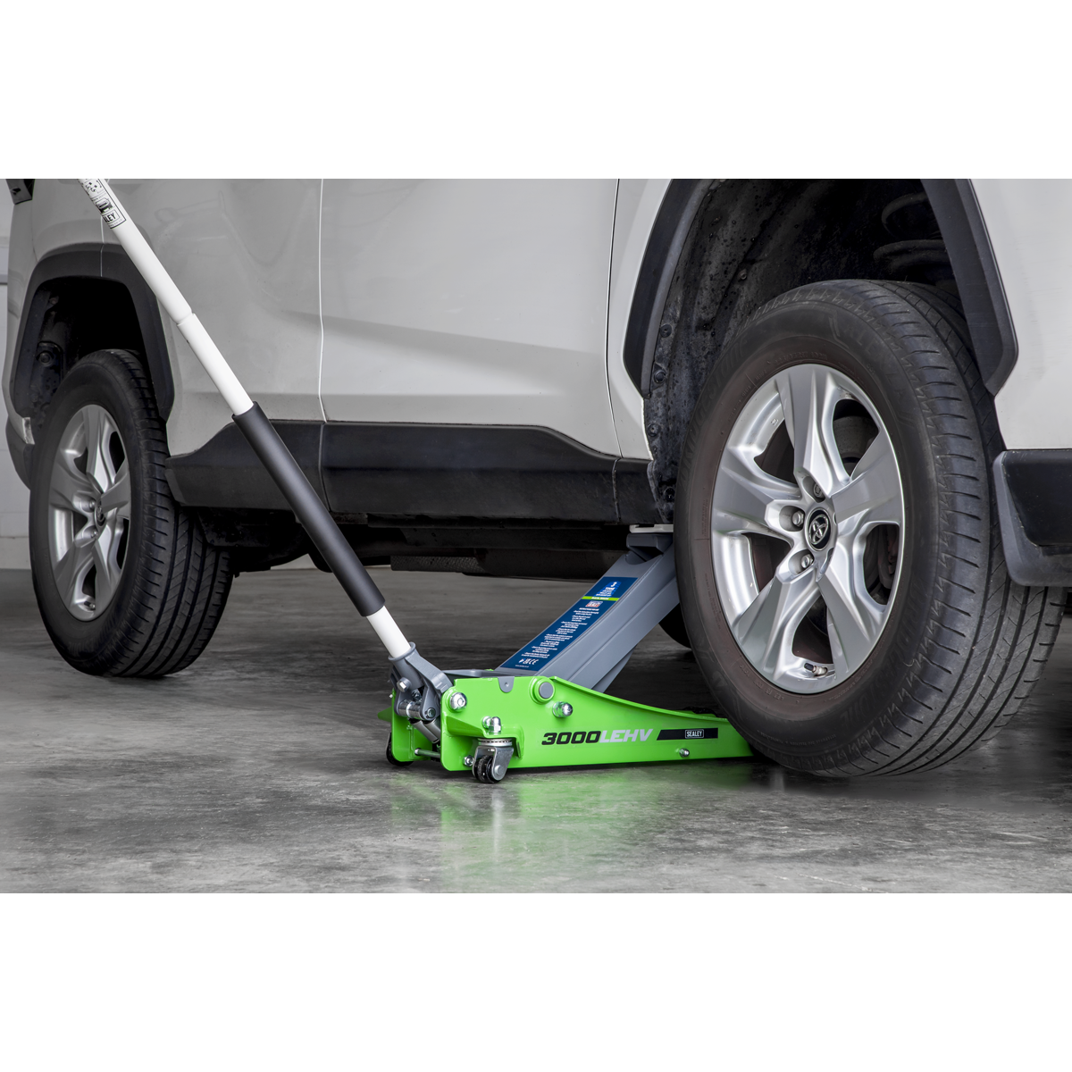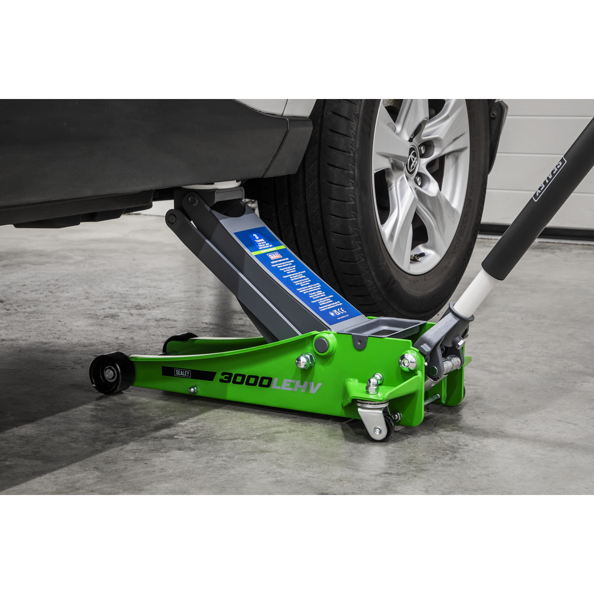 3000LEHV Low Profile Trolley Jack with Rocket Lift 3 Tonne - Green