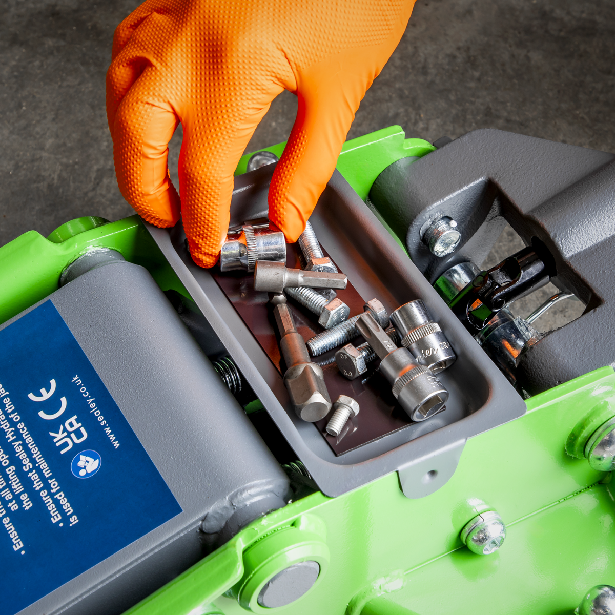 • TWIN PISTON ROCKET LIFT - Brings the lifting arm straight into contact with the jacking point with minimal pumps.