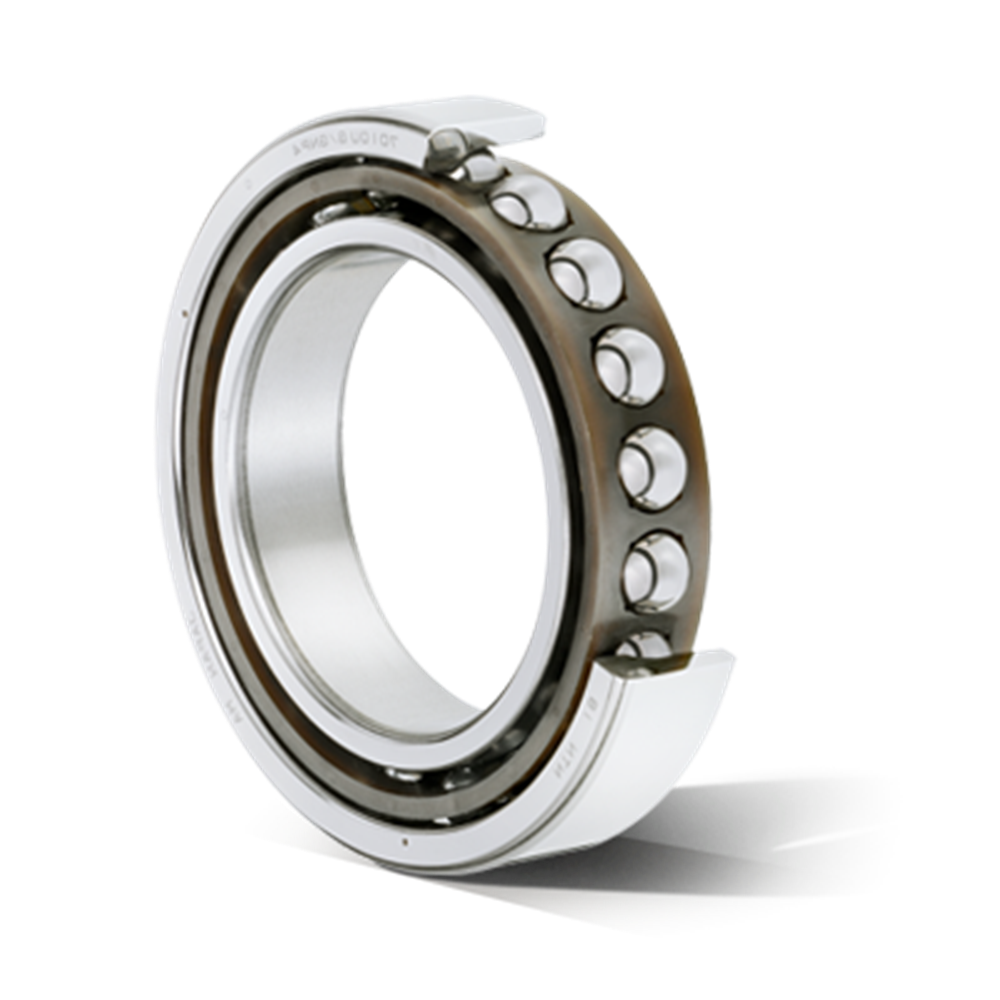 High precision angular contact ball bearing, laminated resin cage centred on outer ring