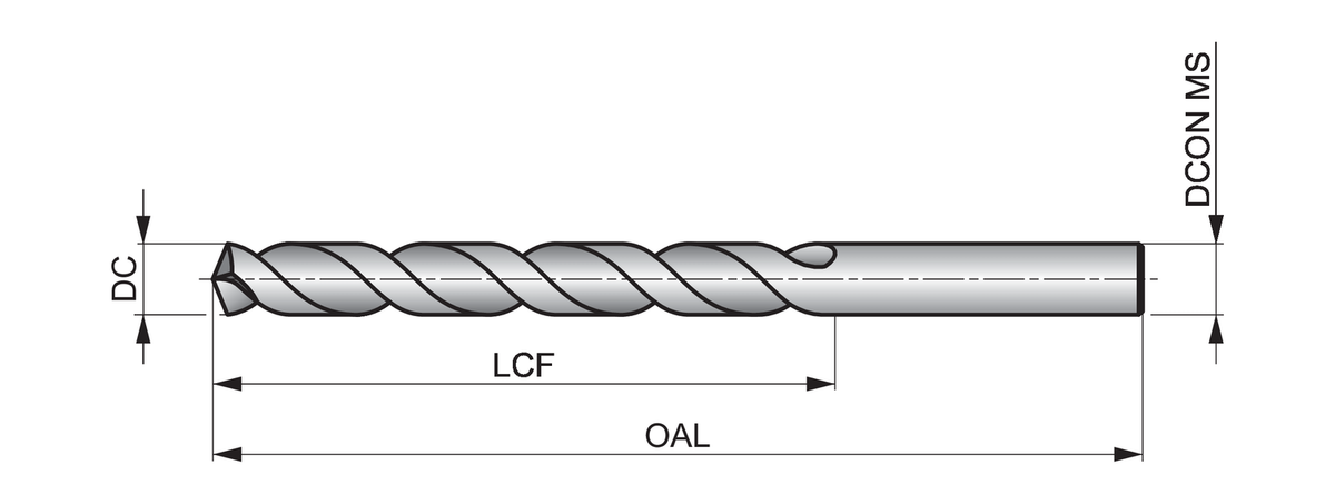 Jobber length drill with straight shank, diameter 12mm with an overall length of 151mm and flute length of 101mm according to DIN 338 standard with 135° split point, HSS with steam tempered finish and quick spiral for 4xD drilling without pecking in stainless steel