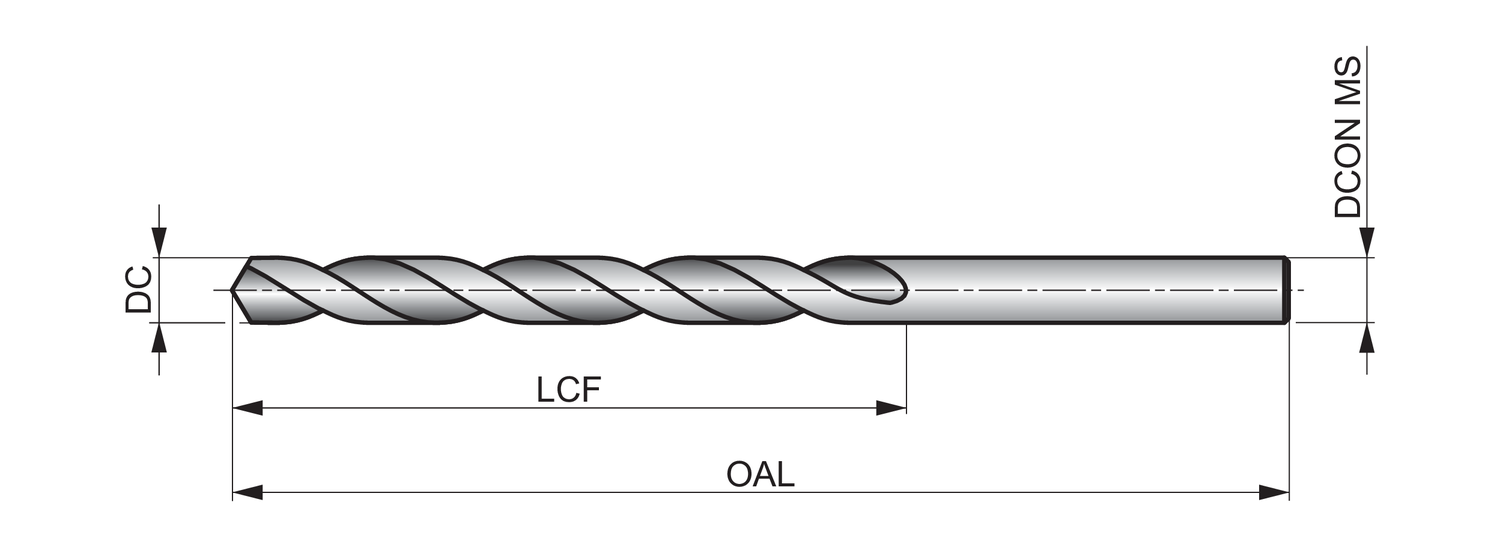 Long series drill with straight shank, diameter 11mm with an overall length of 195mm and flute length of 128mm according to DIN 340 standard with 118° point angle, HSS with steam tempered finish for 6xD drilling without pecking in steel