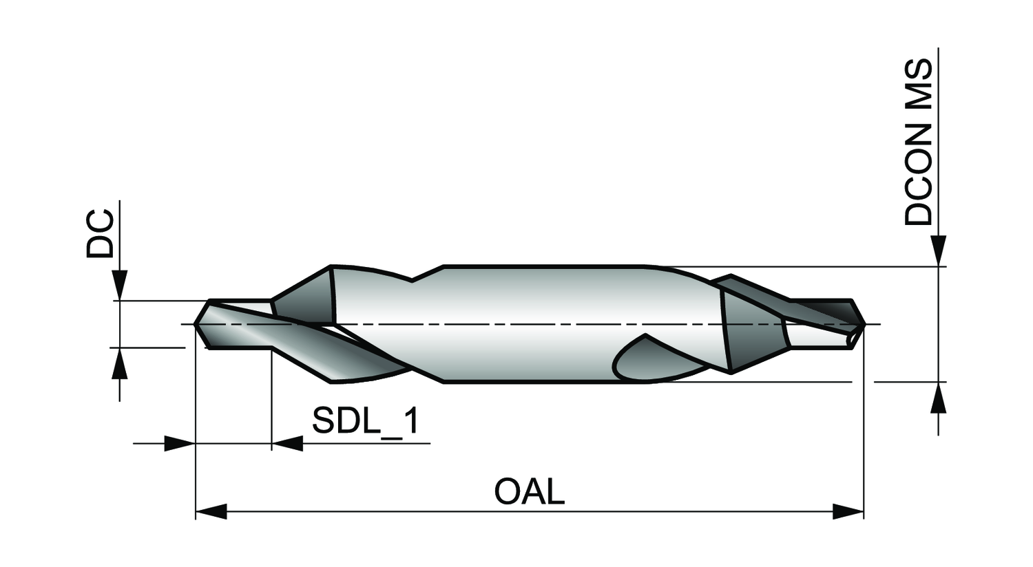 Centre drill (combined drill and countersink) with 60° straight conical form, double ended and cylindrical body, size BS3 with 3/32" drill diameter, a body diameter of 1/4" and an overall length of 2", according to BS 328 standard to produce form A centre holes, HSS and bright finish for machining free machining, plain carbon and alloy steel and grey cast-iron
