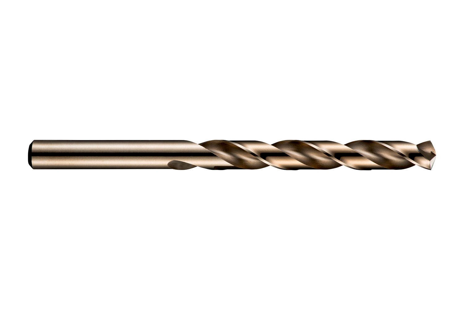 Jobber length drill with straight shank, diameter 7mm with an overall length of 109mm and flute length of 69mm according to DIN 338 standard with 135° split point, cobalt based HSS-E with bronze finish for 4xD drilling without pecking in steel and super-alloy