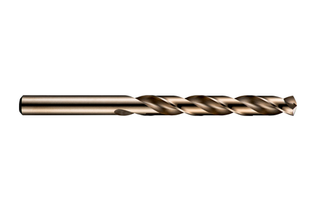 Jobber length drill with straight shank, diameter 7.5mm with an overall length of 109mm and flute length of 69mm according to DIN 338 standard with 135° split point, cobalt based HSS-E with bronze finish for 4xD drilling without pecking in steel and super-alloy