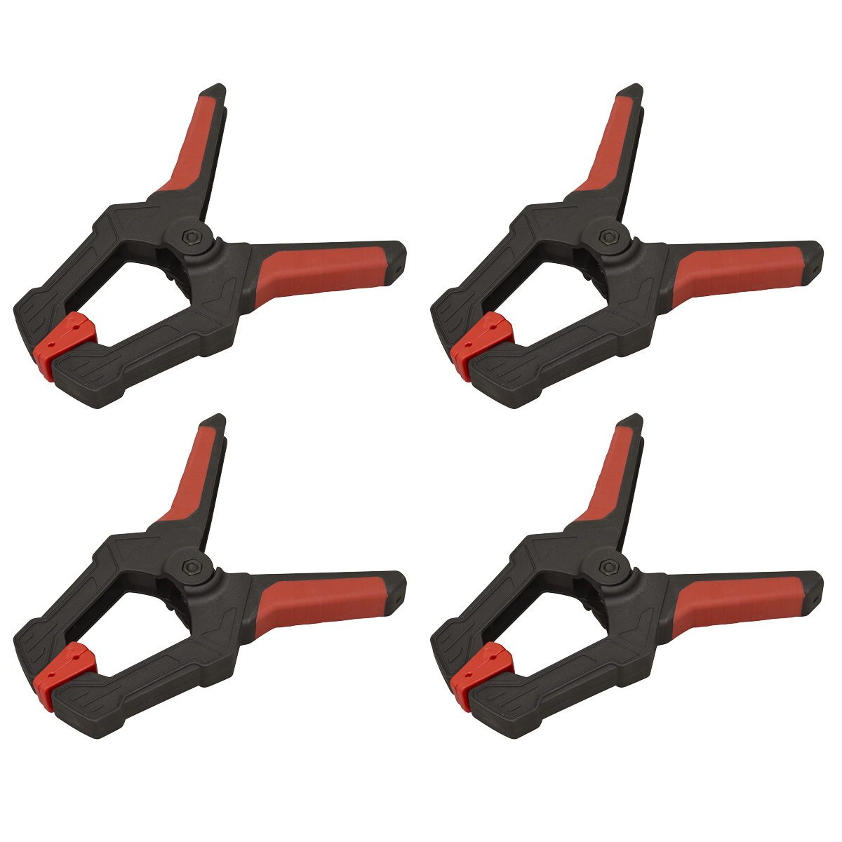 Suitable for a wide range of applications including garage, workshop and woodworking projects. Adjustable clamp jaw opening can be adjusted to accommodate different sizes and shapes of work. High clamping force, tough enough to hold work in place. Ideal for gluing, clamping and gripping projects. Soft grip handles, swivelling jaw grips and strong spring make them tough and durable. Perfect for one-handed use.,• VERSATILE - Suitable for a wide range of applications including garage, workshop and woodworking projects.
