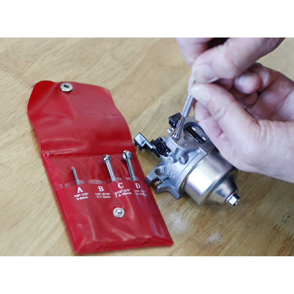 Ideal for accurately measuring holes, slots, grooves and recesses when used in conjunction with a micrometer. Set of four gauges ranging from 3mm(0.125") up to 13mm(0.5"). Knurled handles with smooth adjustment provide secure and accurate handling. Safety stop feature prevents gauge from being adjusted beyond operating range to prevent breakage. Supplied in marked storage pouch.