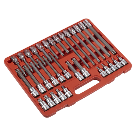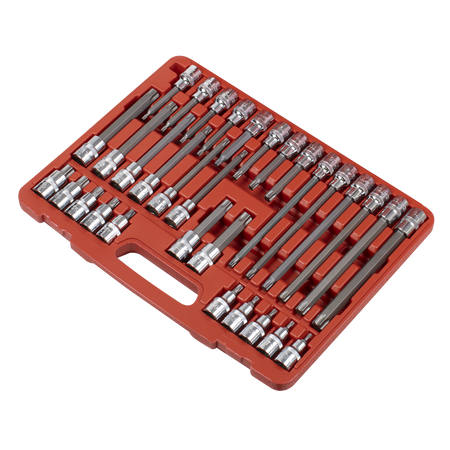 • 32PC SET WITH STEEL SOCKETS AND S2 STEEL BITS – Contents includes: Length 55mm; T20, T25, T27, T30, T40, T45, T50, T55, T60, T70, Length 100mm; T20, T25, T27, T30, T40, T45, T50, T55, T60, T70, Length 140mm; T40, T45, T50, T55, T60, T70, Length 200mm; T40, T45, T50, T55, T60, T70