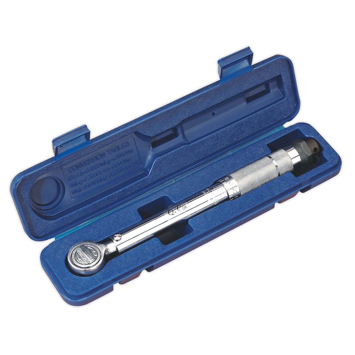 Heat treated steel ratchet head. Fully hardened and tempered. Chrome plated for corrosion resistance. Calibration tolerance in accordance with BS EN ISO 6789-1:2017. Micrometer type torque range adjustment with scale graduated in both Nm and lb.ft. Flip reverse ratchet mechanism. Supplied in storage case.