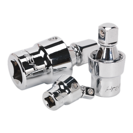 Manufactured from hardened and tempered Chrome Vanadium steel with a fully polished mirror finish. Three universal joints with a spring-ball socket retainer. Unique design allows for smooth rotation and high torque.