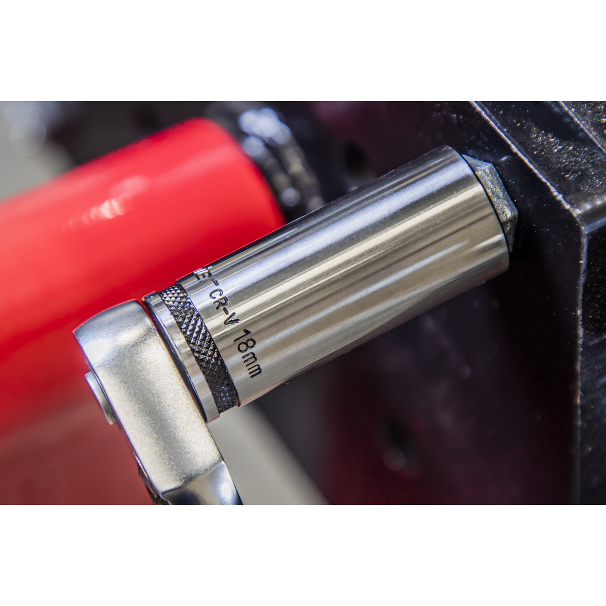Manufactured from hardened and tempered high grade Chrome Vanadium steel. Fully polished black chrome finish for resistance to corrosion. Features specially machined flutes in the walls of the socket which enable use on up to 85% rounded fasteners. This not only provides added strength but also prevents damage to worn or rusted fixings. Includes knurled ring for extra grip with oily fingers. Supplied on socket rail.