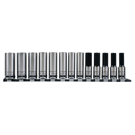 • Contents: 10, 11, 12, 13, 14, 15, 16, 17, 18, 19, 21, 22, 24mm, Socket Rail.