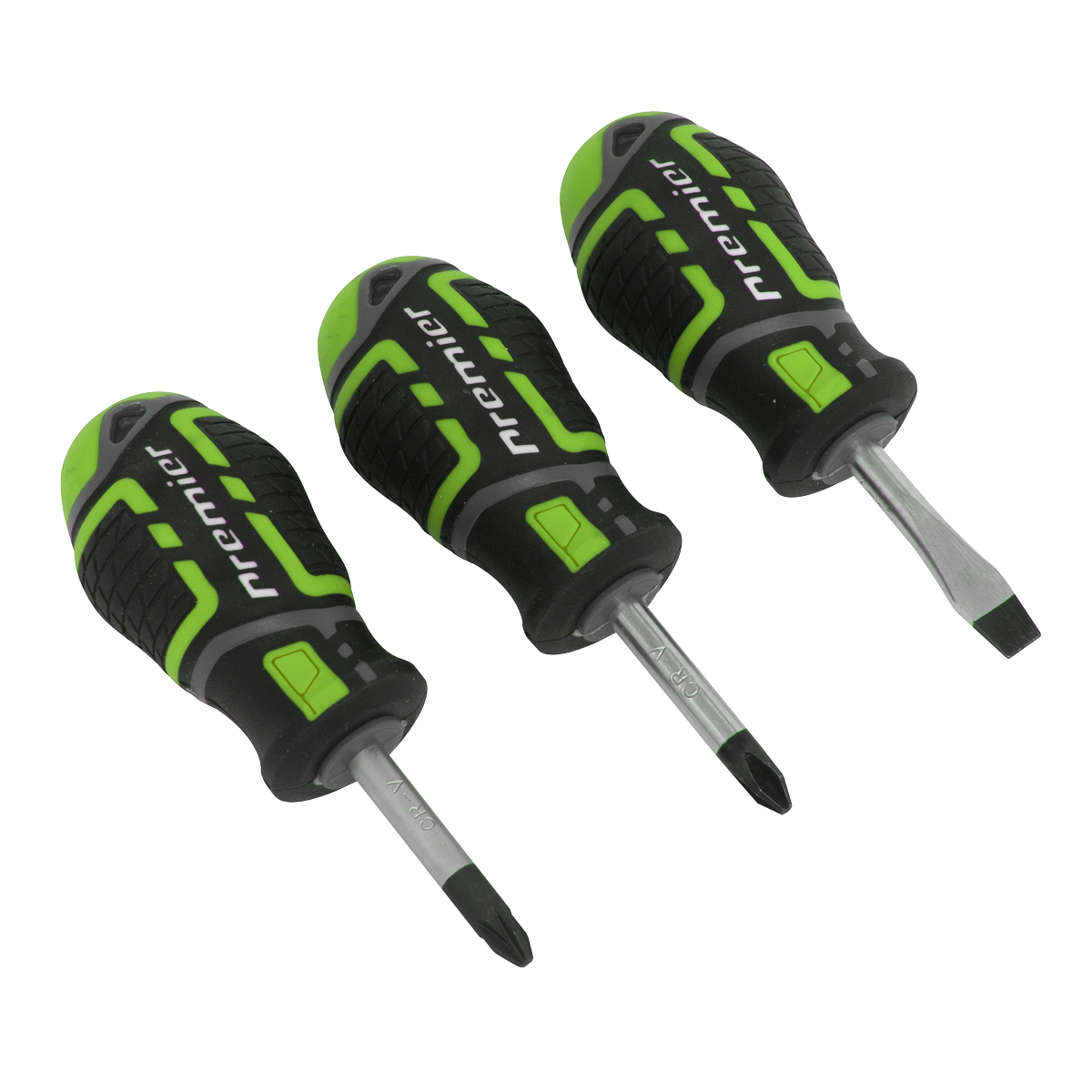 AK4328HV Premier GripMAX Stubby Screwdriver Set 3pc - Hi-Vis Green