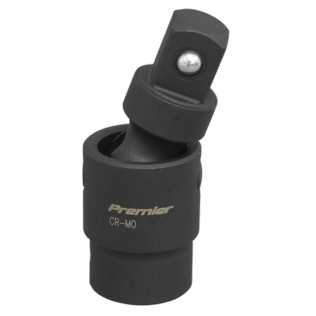 Drop-forged Chrome Molybdenum steel universal joint. Suitable for use on all types of air impact tool. Phosphate finish for added corrosion resistance. Spring-ball socket retainer and drilled head to accept retaining pin.