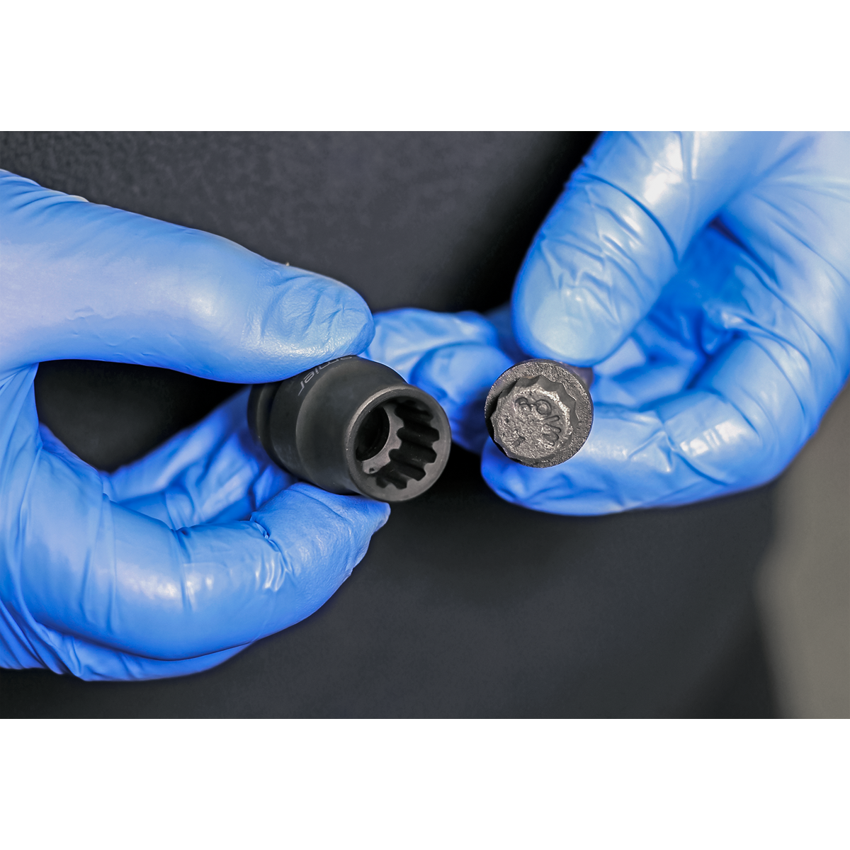 Hardened and heat treated Chrome Molybdenum steel Total Drive impact sockets with a phosphate finish for corrosion resistance. All are suitable for Spline, Metric Hex and Metric Bi-Hex and many are equivalent to TRX-Star*, Whitworth, Imperial Hex and Imperial Bi-Hex. Suitable for use with air/electric impact guns. Supplied in storage case.