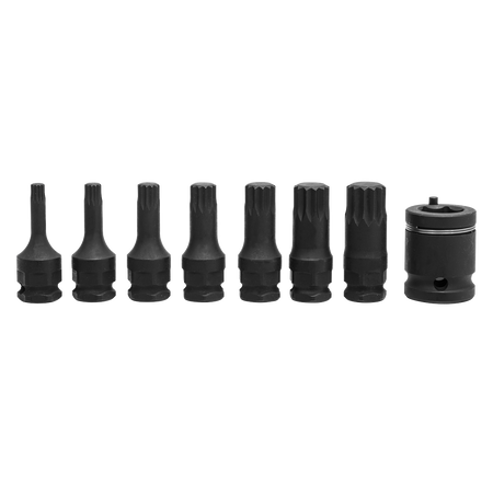 • 3/8"Sq Drive impact spline socket bits with an additional locking 1/2"Sq drive quick change adaptor.