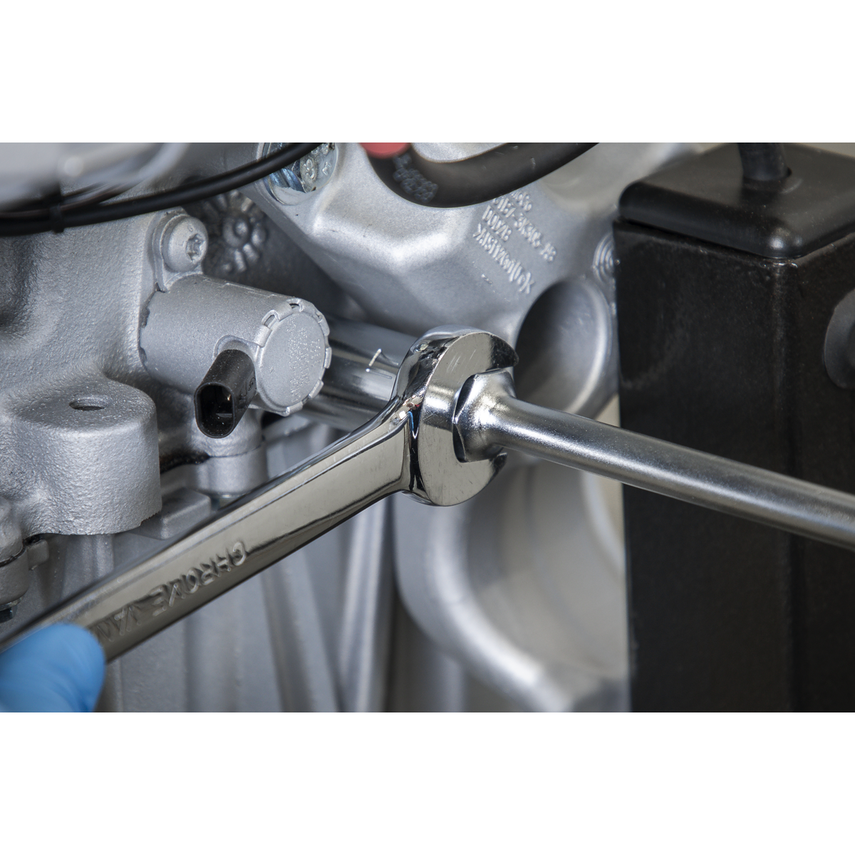 Heat treated Chrome Vanadium steel shaft with deep profile sockets. WallDrive® socket with hex flats for extra driving power.