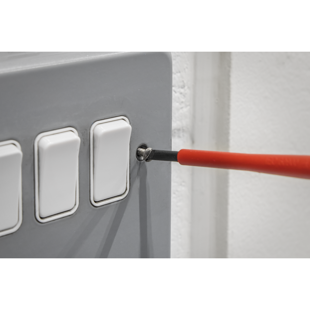 Chrome Vanadium steel shafts with magnetic and corrosion resistant tips. Fully insulated to VDE and EN 60900 standards to protect from electric shocks up to 1000V. Ideal for technicians working on modern hybrid and electric vehicles. Contoured, textured handles with non-slip comfort grip and hanging holes.