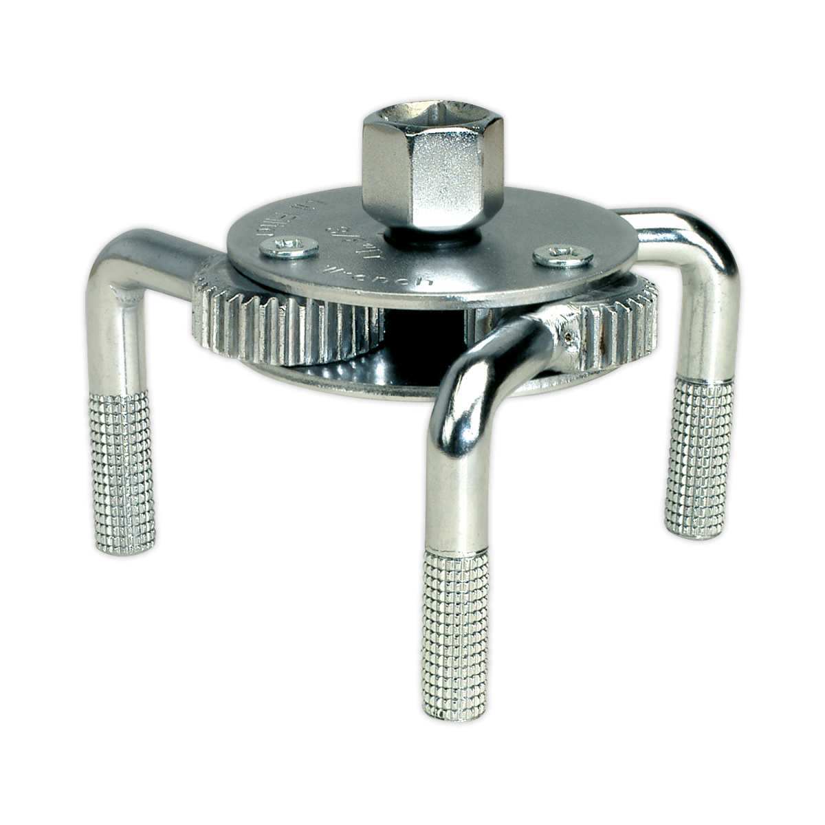Satin finish steel construction with 3/8" and 1/2"Sq drive. Also suitable for use with a 21mm(13/16") spanner. Claws grip filter tighter as more torque is applied.,• Satin chrome finish steel construction with 3/8" and 1/2"Sq drive.