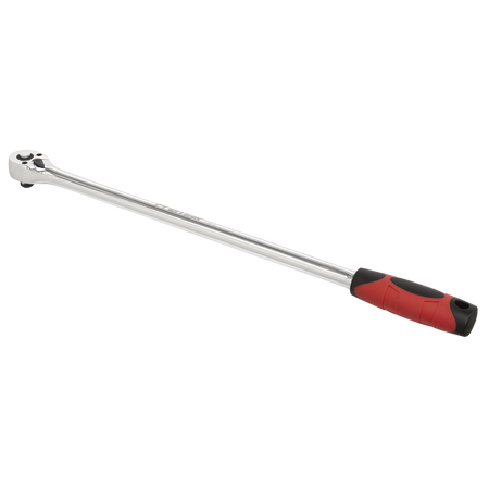 Hardened and tempered Chrome Vanadium steel ratchet wrench with a fully polished mirror finish. Ultra-smooth 72-tooth pear-head ratchet and soft grip handle for added comfort and control. Extra-long shaft improves access for hard-to-reach applications. Features flip reverse and spring-ball socket retention.