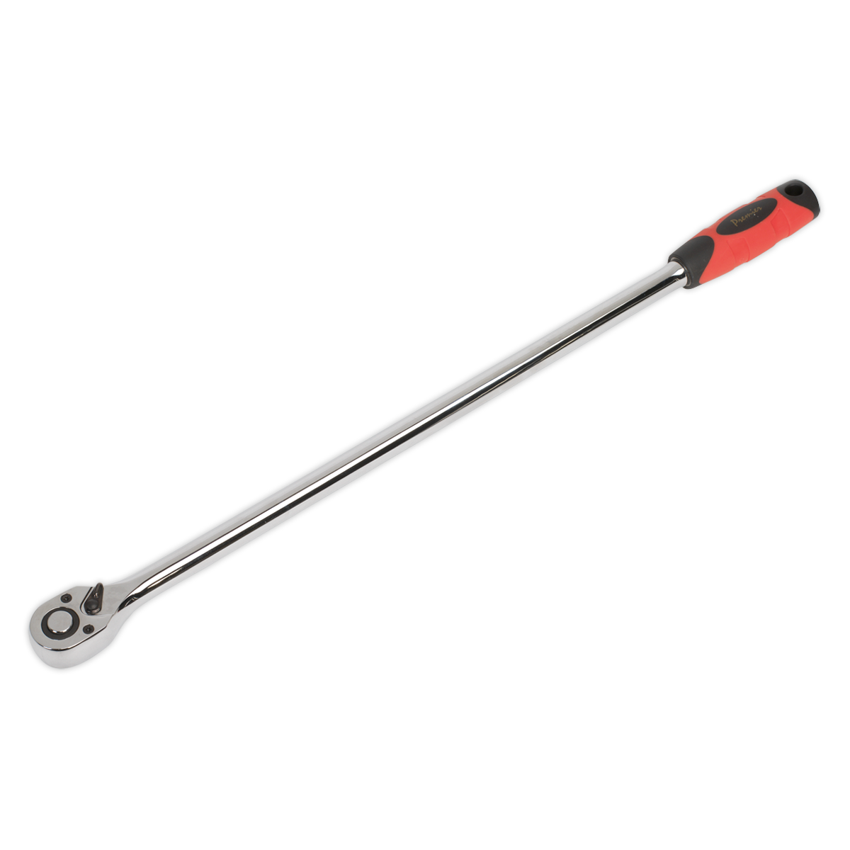 Hardened and tempered Chrome Vanadium steel ratchet wrench with a fully polished mirror finish. Ultra-smooth 72-tooth pear-head ratchet and soft grip handle for added comfort and control. Extra-long shaft improves access for hard-to-reach applications. Features flip reverse and spring-ball socket retention.