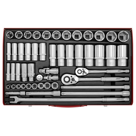 • Deluxe professional socket set with heat treated Chrome Vanadium steel WallDrive® sockets.