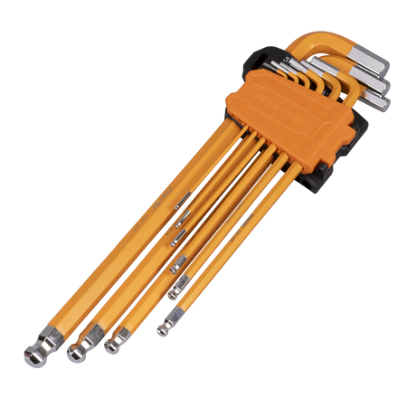 Manufactured from heat treated and hardened Chrome Vanadium steel with a fully polished finish. Keys range in length from 90.5 to 231mm. Contents: 1/16", 5/64", 3/32", 1/8", 5/32", 3/16", 1/4", 5/16", 3/8". Anti-slip coating for comfort and control. Supplied in easy-access case for safe storage and quick key selection.