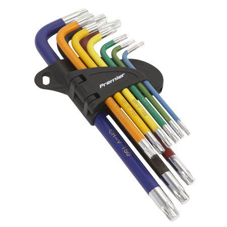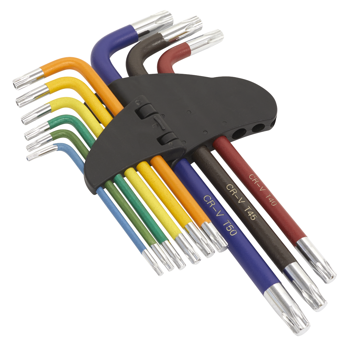 Manufactured from hardened and heat treated Chrome Vanadium steel with a fully polished finish. Keys range in length from 65 to 175mm. Contents: T10, T15, T20, T25, T27, T30, T40, T45, T50. Colour-coded anti-slip coating for comfort, control and fast identification. Supplied in easy-access case for safe storage and quick key selection.