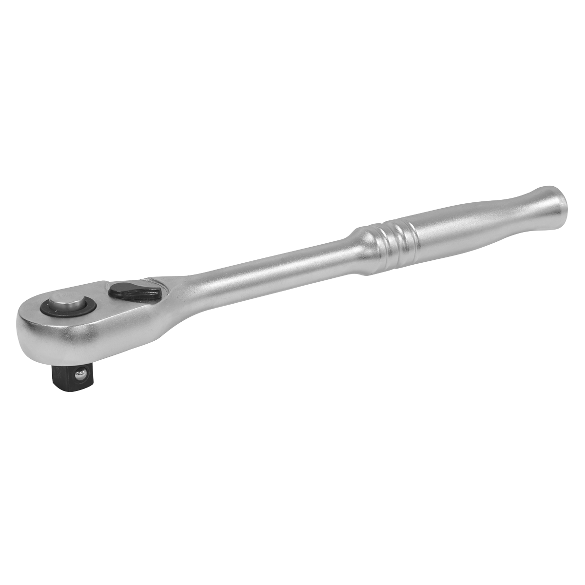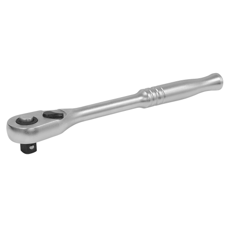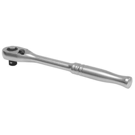 Chrome Vanadium steel gear-to-gear 90-tooth ratchet wrench. Hardened and tempered with a micro satin finish. Slim style contoured handle with pear-head design. Features flip reverse and quick release mechanism.