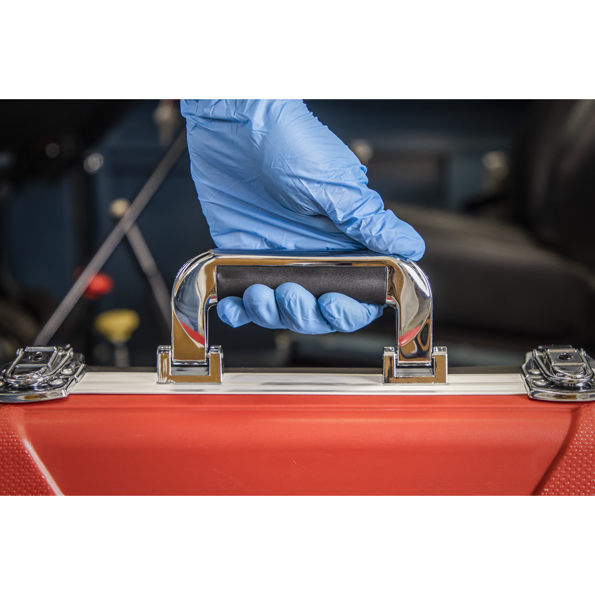 Deluxe professional socket set with hardened and heat treated Chrome Vanadium steel sockets. Fully polished with a mirror finish. Covers sizes from 4 to 32mm. Includes comfort grip ratchet wrenches, chrome plated spark plug sockets, extension bars, female TRX-Star* sockets, socket bits, combination spanners, hex keys, bits, Magnetic bit driver, spinner handle and accessories. Supplied in storage case.
