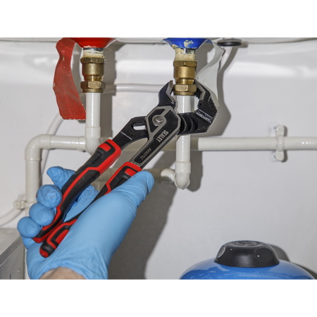 Manufactured from hardened and tempered drop-forged Chrome Vanadium steel. Finely ground polished heads. Serrated jaws and precision ground cutting edges, induction-hardened 55-65 HRC for cutting hard and soft wires. Unique teeth and jaw design on water pump pliers increases torque and grips round, flat, square and hex profiles. Unique teeth and jaw design on water pump pliers increases torque and grips round, flat, square and hex profiles. Dual material comfort grip handles and black oxide finish for corrosion resistance.