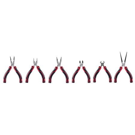 • Contents: 105mm End Cutters, 115mm Side Cutters, 115mm Combination Pliers, 125mm Bent Nose Pliers, 125mm Long Nose Pliers, 145mm Needle Nose Pliers.