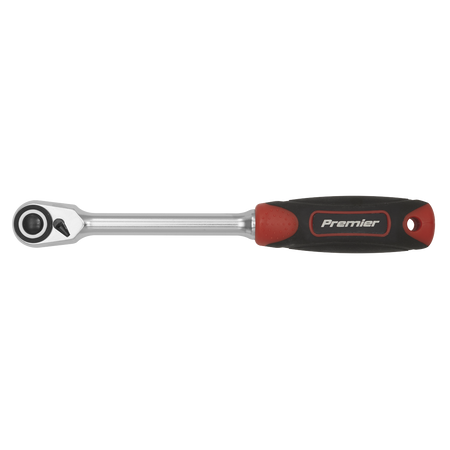 Chrome Vanadium steel ratchet wrench. Hardened and tempered with a fully polished micro satin finish. Compact head design and ultra-smooth 72-tooth ratchet action allowing ratcheting in increments of 5° for ease of use in restricted areas. Textured soft grip handle for comfort and control. Features integrated socket spinner, flip reverse and quick release mechanism.