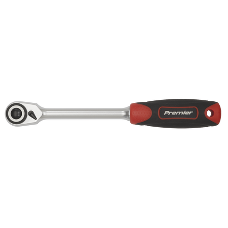 Chrome Vanadium steel ratchet wrench. Hardened and tempered with a fully polished micro satin finish. Compact head design and ultra-smooth 72-tooth ratchet action allowing ratcheting in increments of 5° for ease of use in restricted areas. Textured soft grip handle for comfort and control. Features integrated socket spinner, flip reverse and quick release mechanism.