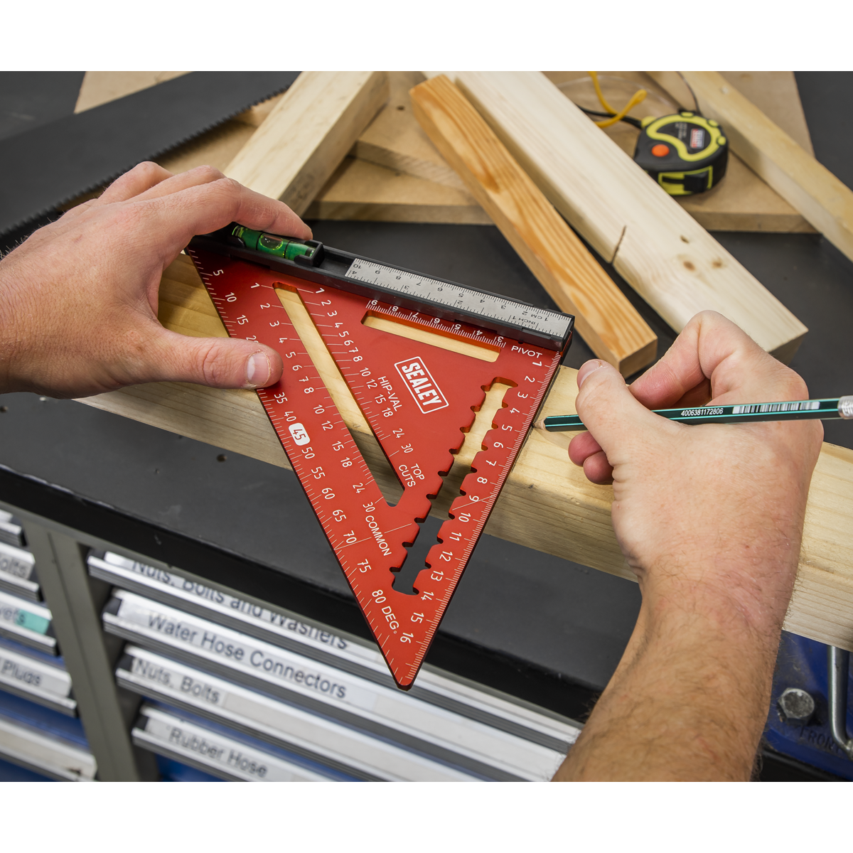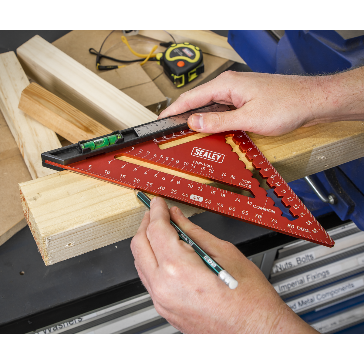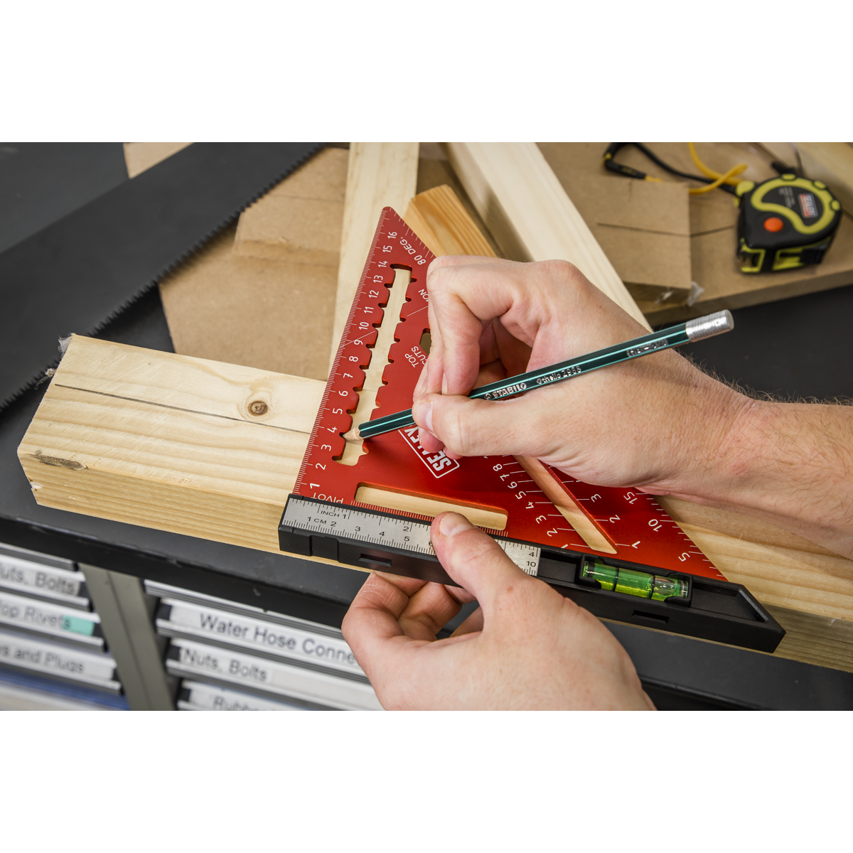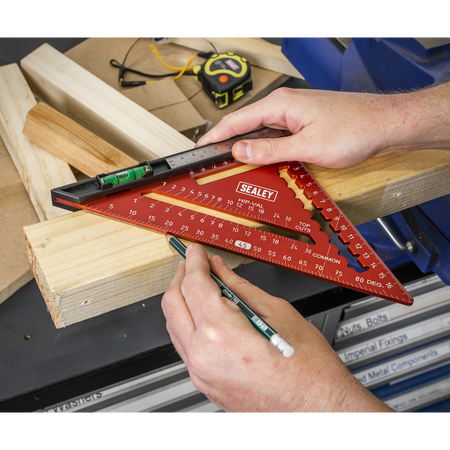 • Suitable for many uses including framing square, pitch guide and mitre.