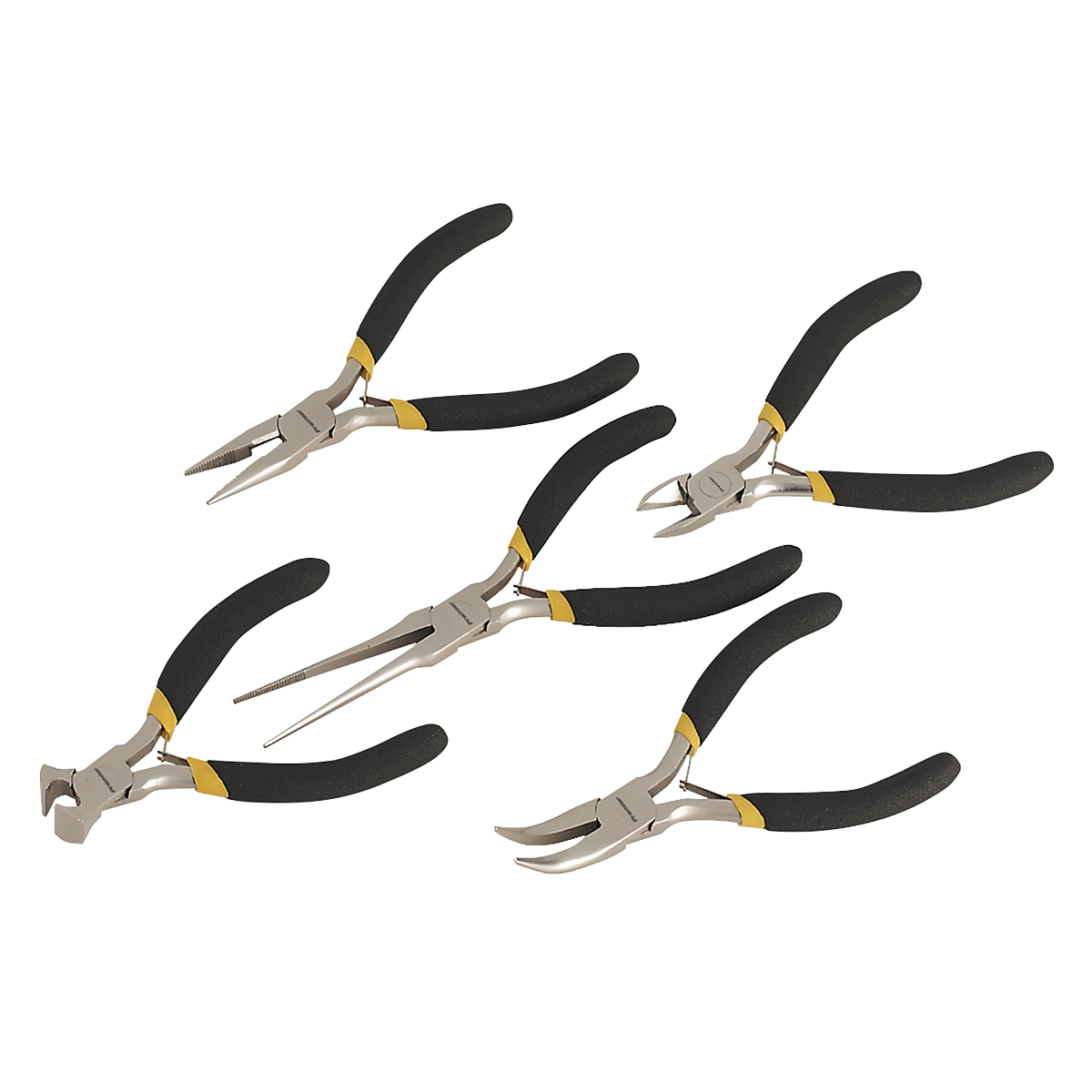 • Contents: 110mm Diagonal Side Cutter, 150mm Needle Nose Pliers , 105mm End Cutter, 120mm Snipe Nose Pliers , 125mm Long Nose Pliers.