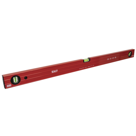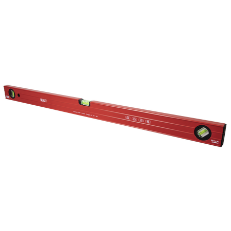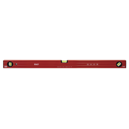 1mm Aluminium ribbed box section level. Powder coated for corrosion resistance. Accuracy 1mm in 1m (0.057°). Model includes UV resistant and shockproof vials, one horizontal with side view, one vertical and one 45°. Base with precision milled face.