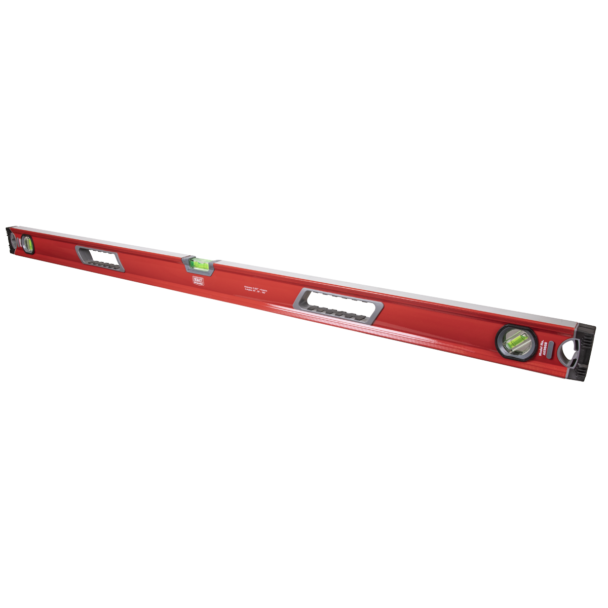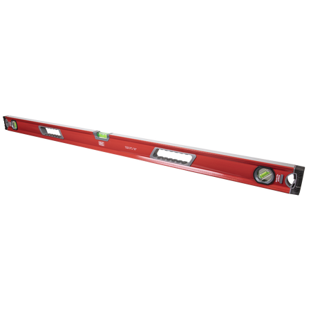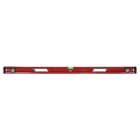 1mm Aluminium box beam section level. Powder coated for corrosion resistance. Accuracy 1mm in 1m (0.057°). Model includes UV resistant and shockproof vials, one horizontal with side view, one vertical and one 45°. Precision milled face on top and bottom.