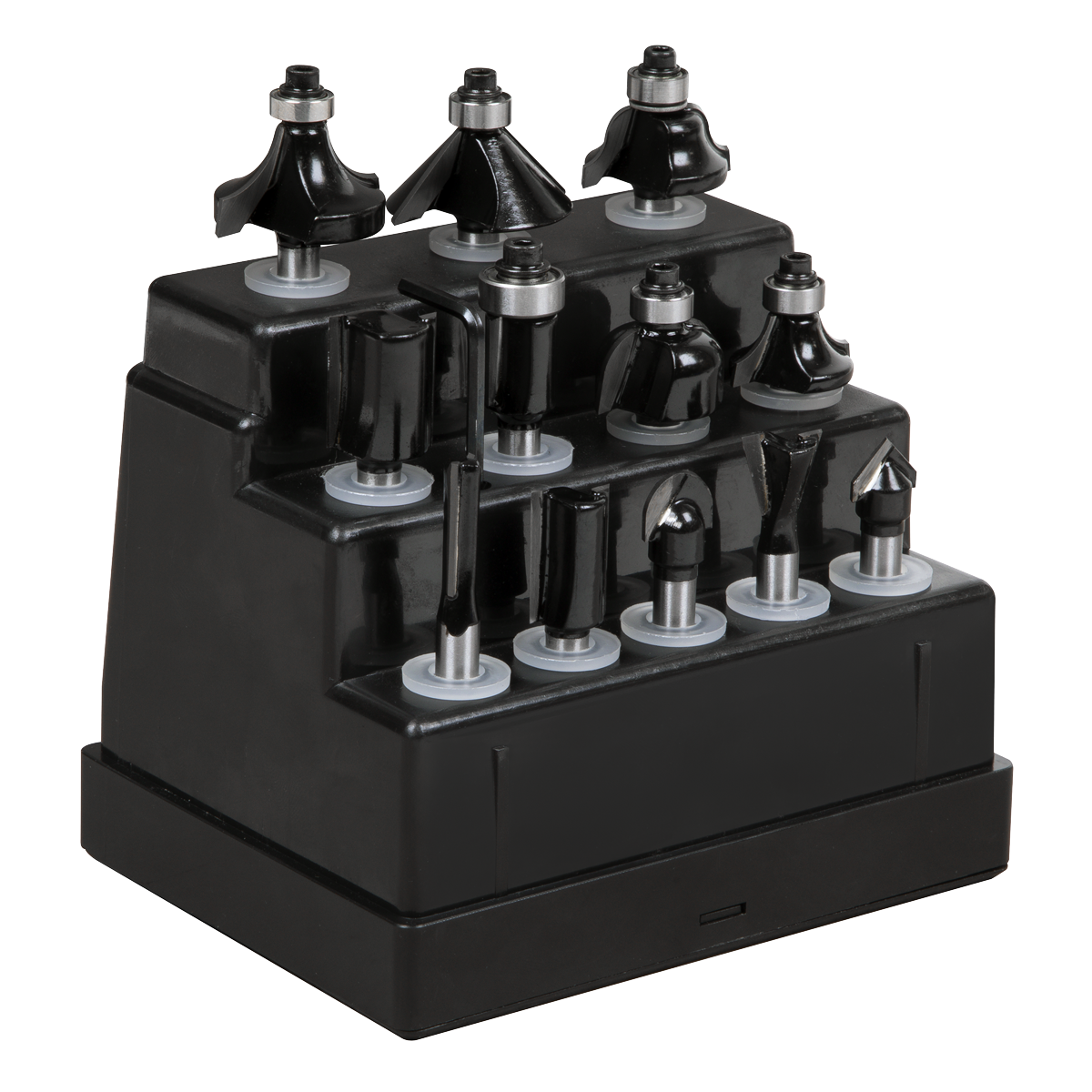 Assorted router bits with sturdy heads for long-life. Sharp cutter heads made from YG8 alloy with a spray-painted surface to prevent accumulation of materials. Suitable for a wide variety of applications. Supplied in tiered storage case.,• ASSORTMENT - 12pc Assortment of router bits with sturdy heads for long-life.