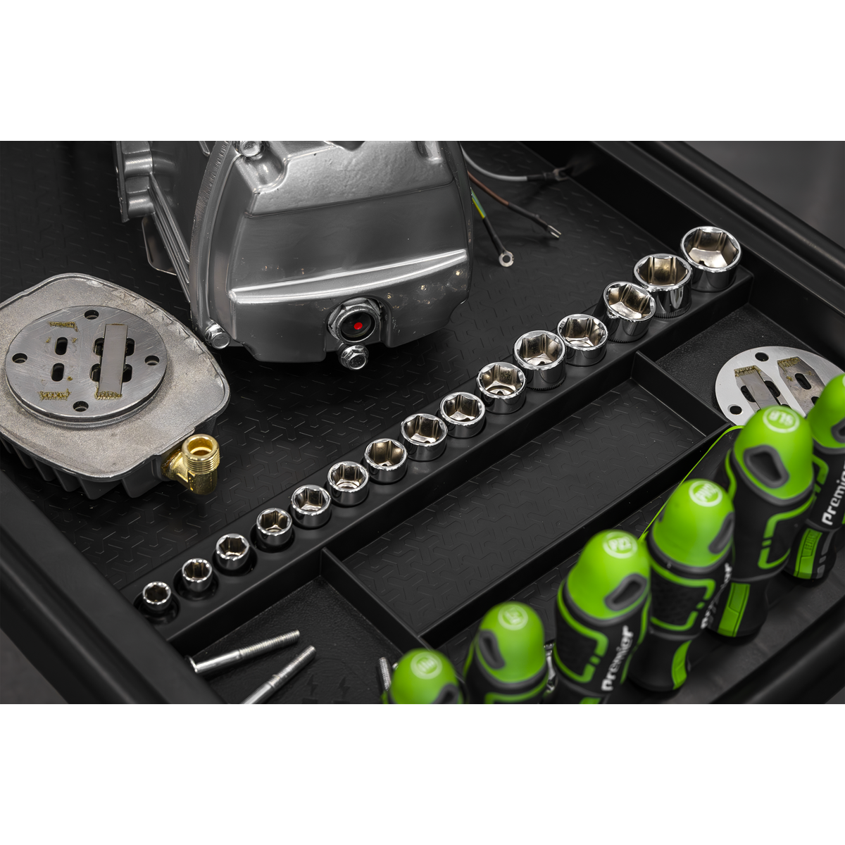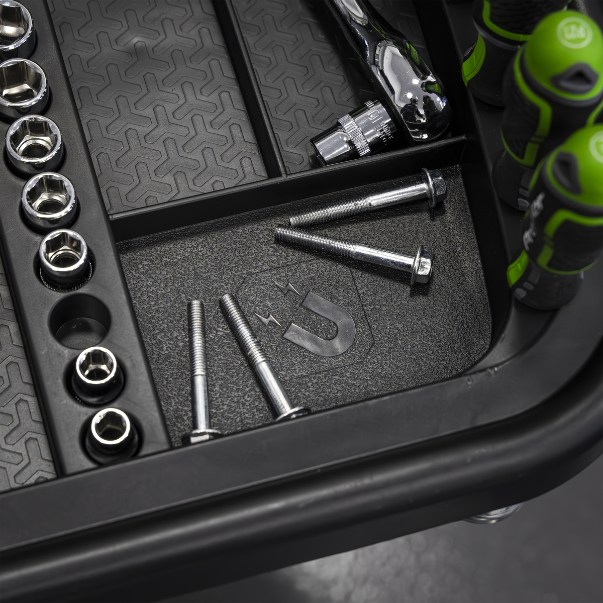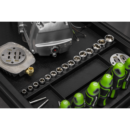 • STAY ORGANISED - Features two magnetic collection trays, two small tool storage sections, one large section for main workpiece as well as nine screwdriver storage holes and 15 socket storage slots.