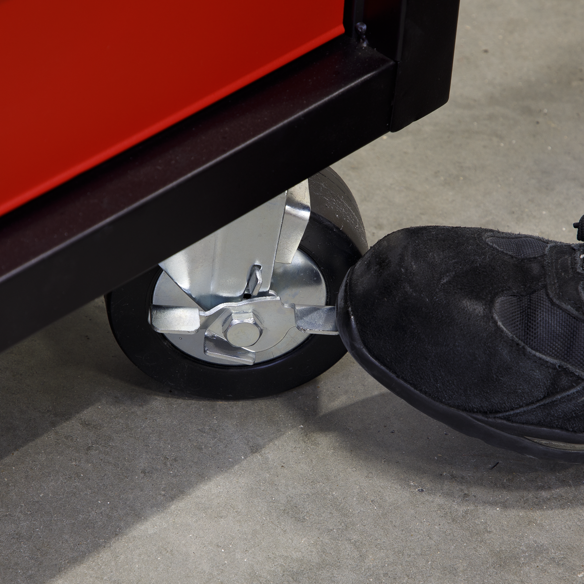 • Six large castor wheels (four swivel and two fixed) that include brakes.