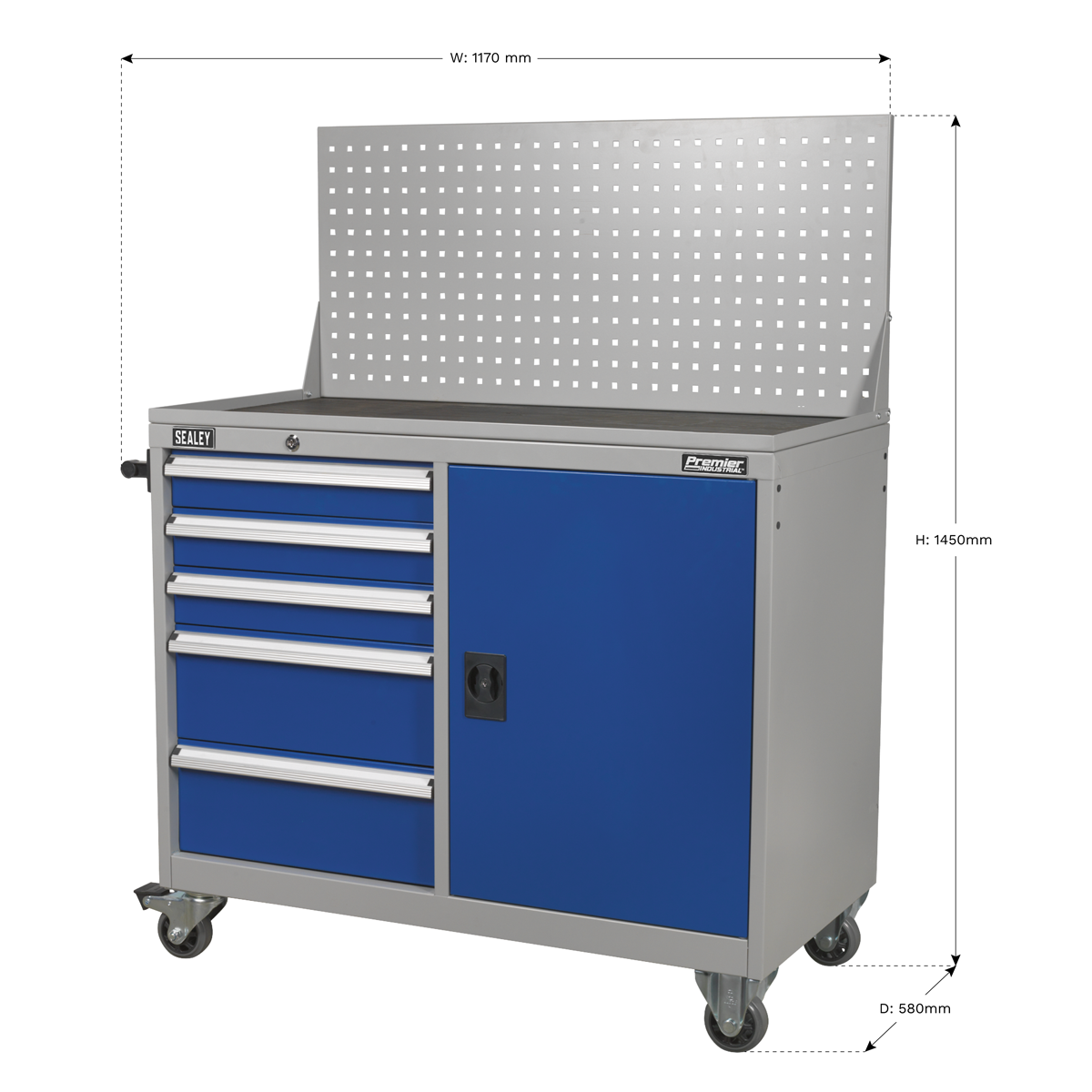 API1103A Premier Industrial Mobile Workstation with 5 Drawers & 1 Shelf