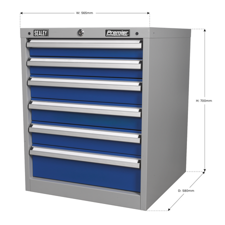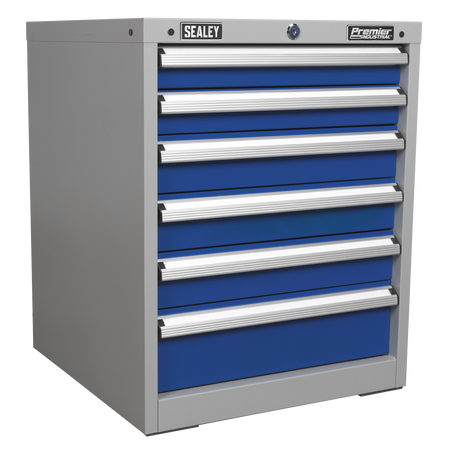 Industrial quality cabinets each offering a unique drawer configuration. All drawers run on heavy-duty ball-bearing drawer slides with a load capacity of up to 100kg and are fitted with a safety locking catch to prevent inadvertent opening. Each drawer is fitted with fixed dividers running back to front and then supplied with cross dividers for personalised storage layout. These three models are the perfect height to fit underneath the workbenches in this range (see page XXX). Each cabinet is fitted with high quality lock and two coded keys.