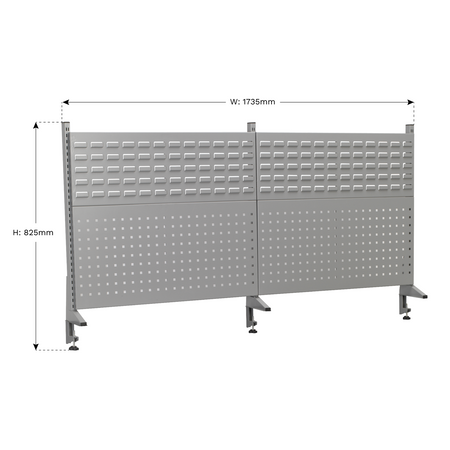 Mounts simply onto workbench top. Supplied with two louvred panels and two PerfoTool storage back panels that help to keep work area free and tidy. Storage bins and hooks supplied separately. Compatible with Model No. API1800 Industrial Workbench.