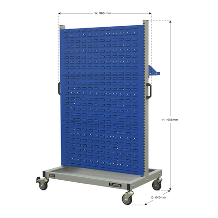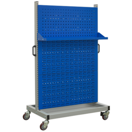 Industrial quality mobile storage system for use in the garage or workshop environment. Supplied with six panels; three louvred, to accept storage bins, and three perforated, which can be used with Sealey TTS Series clips for tool storage. These can be mounted in any configuration, allowing the user to customise the design to suit their needs. It also includes a single shelf, which can be mounted at various heights. Four heavy-duty castors, of which two are fitted with toe locks, give smooth manoeuvrability around the workplace.