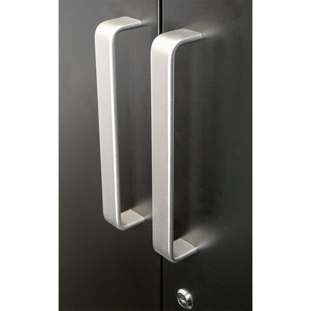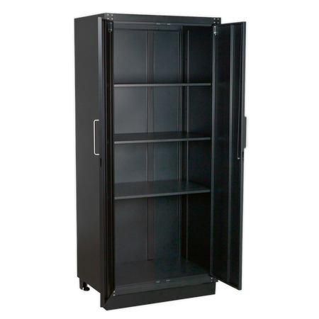 Use as part of a complete professional garage storage system or as an individual storage unit. All steel construction with a graphite powder coat finish. Heavy-duty full height two door cabinet. Three adjustable shelves. Four level-adjusting feet. Added security provided by cylinder lock, supplied with two keys. Requires some self-assembly. Supplied flat-packed for ease of transportation.